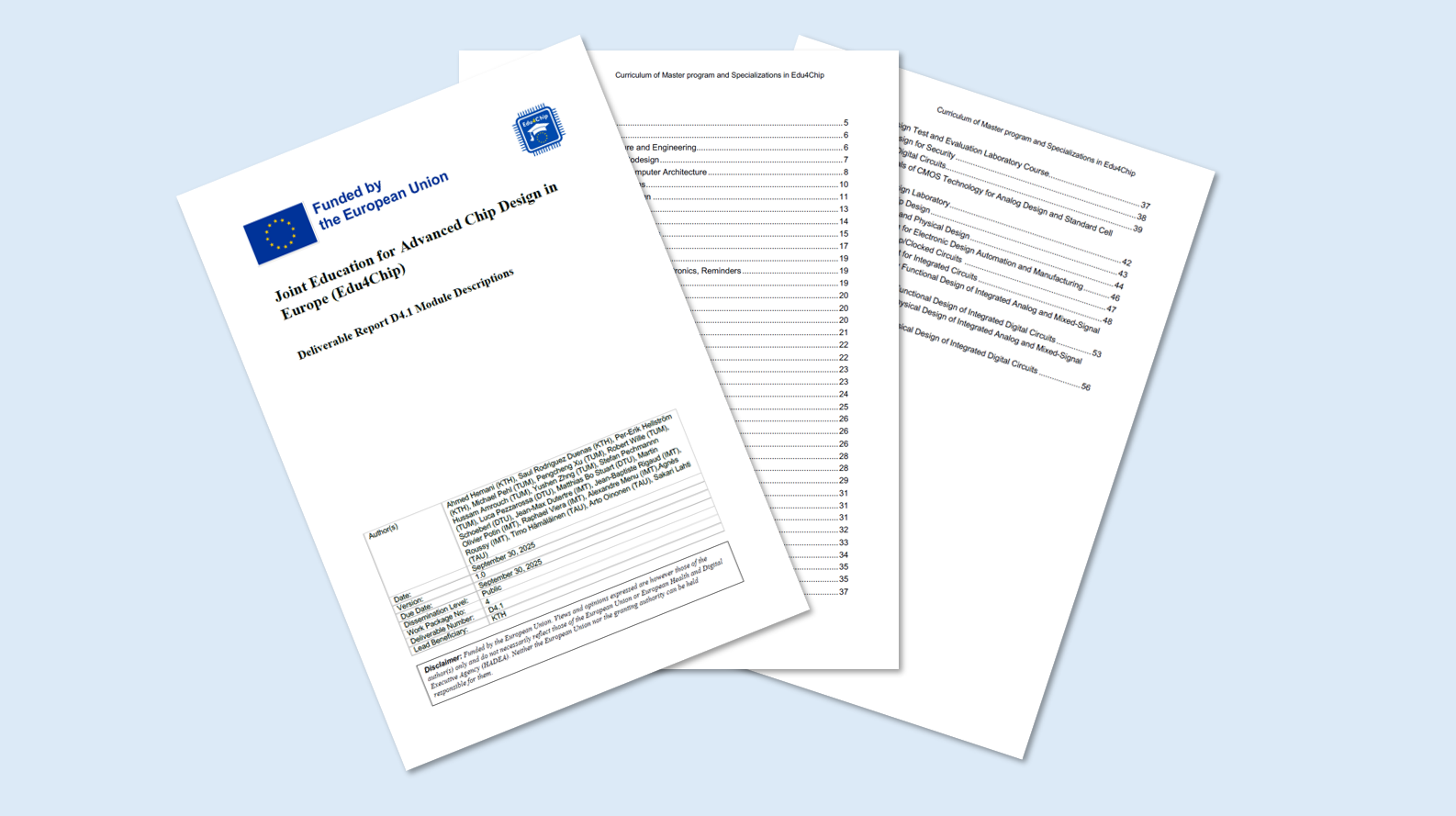 The Edu4Chip consortium has released a public deliverable detailing the curriculum structure of the Master’s programs and specializations in chip design. Developed by TUM, DTU, KTH, TAU, and IMT, the report outlines how each partner integrates the Edu4Chip concept into their academic offerings.